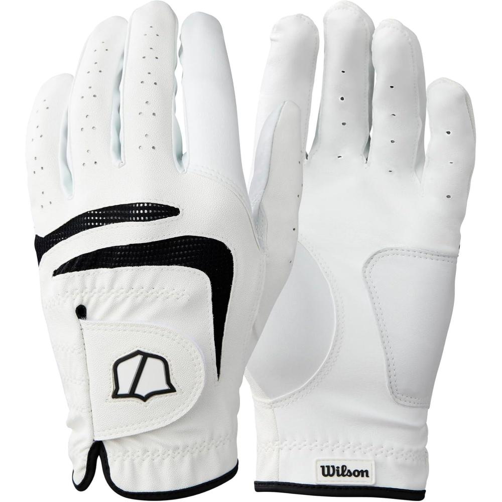 Wilson Men’s Grip Plus Golf Gloves – White/Black(Medium-Large)