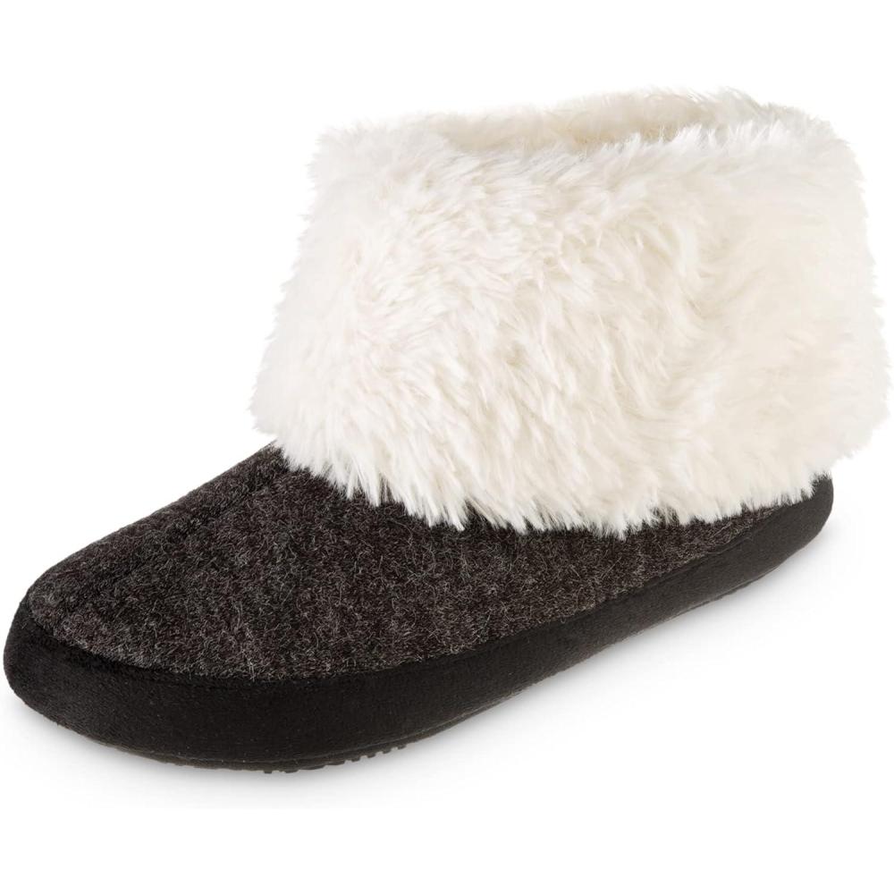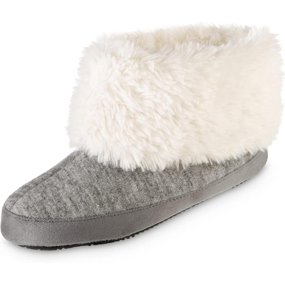 isotoner Women’s Recycled Microsuede Mallory Boot Slipper, with Memory Foam and Indoor/Outdoor Sole(Ash)