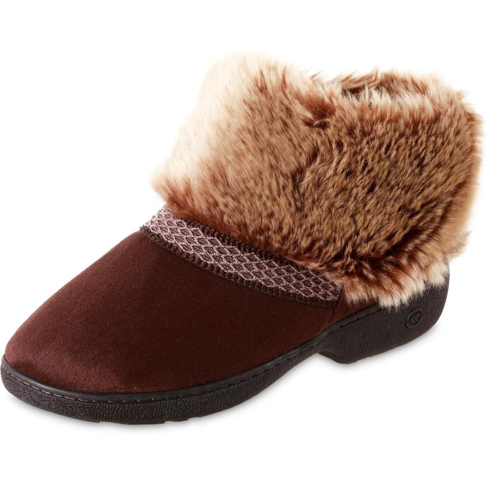 isotoner Women’s Indoor/Outdoor Microsuede Mallory Boot Slippers with Memory Foam Comfort , Dark Chocolate, 6.5-7