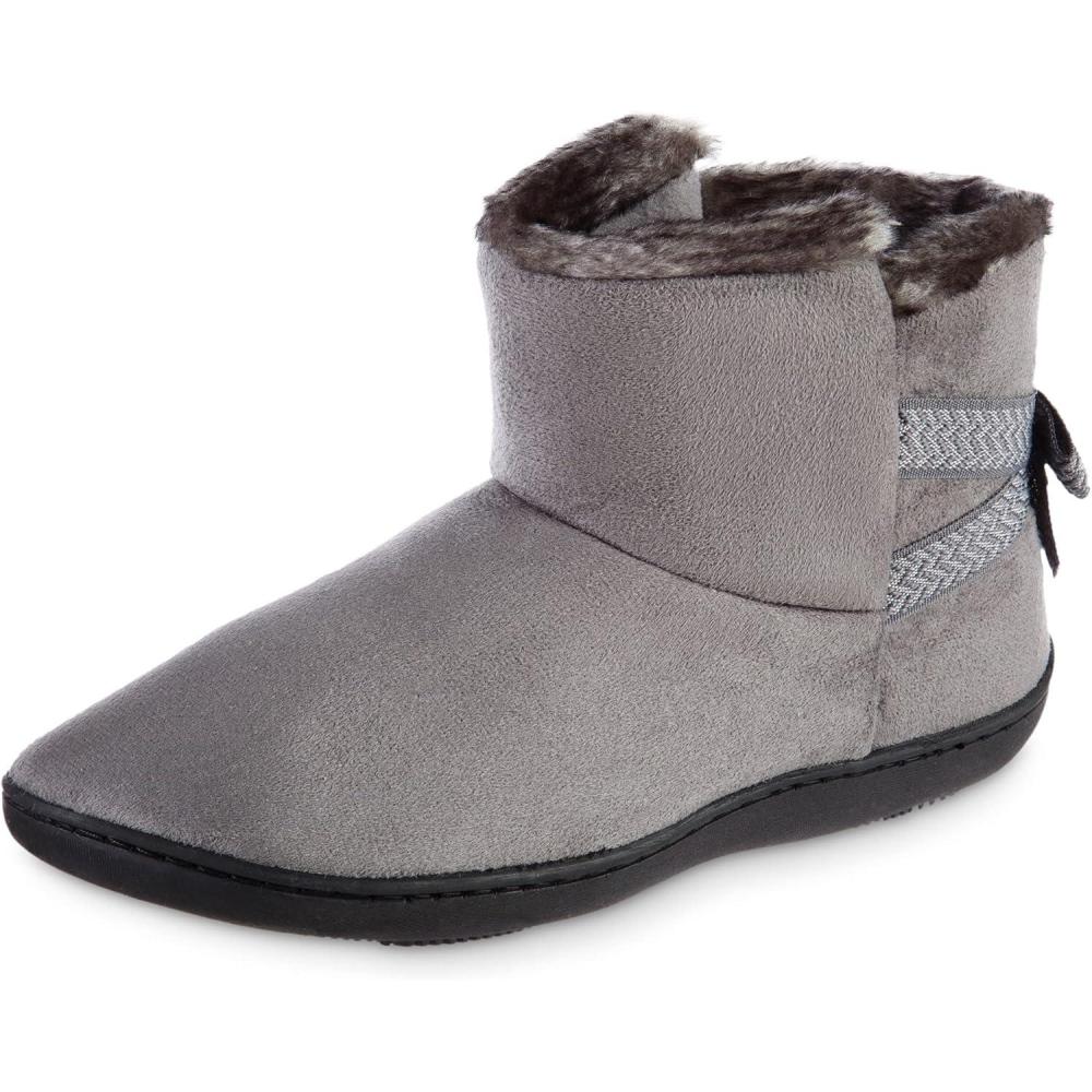 isotoner Women’s Microsuede Mallory Bootie Slippers With Bow(Ash)