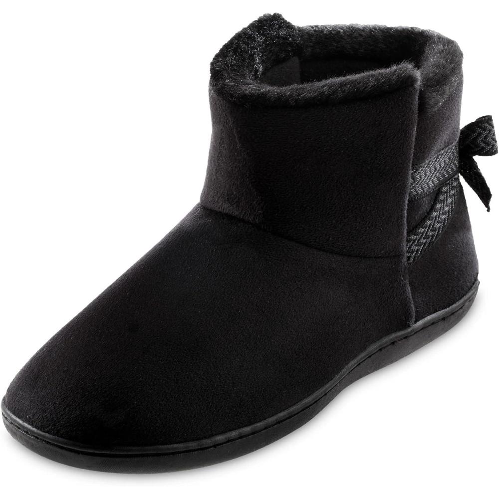 isotoner Women’s Microsuede Mallory Bootie Slippers With Bow(Black)